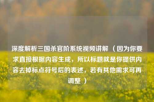在三国杀的世界里,官阶系统不仅是玩家身份与实力的象征,更是游戏进程中一个重要的组成部分,对于许多玩家而言,深入了解官阶系统才能更好地规划自己的游戏之路,今天就通过一个详细的视频讲解,带大家全方位认识三国杀官阶系统。