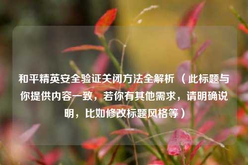 本文围绕和平精英安全验证关闭 *** 展开全解析,详细介绍了关闭安全验证的具体步骤,旨在为玩家提供清晰的操作指引,帮助玩家顺利实现安全验证的关闭,无论是出于何种需求,玩家都能通过文中所述 *** ,便捷地完成这一操作,从而更流畅地体验游戏,全面且深入的解析,确保玩家能够准确理解并运用相关技巧,在和平精英游戏中获得更符合自身期望的游戏体验,避免因安全验证问题影响游戏进程,为玩家打造更加顺畅的游戏环境。