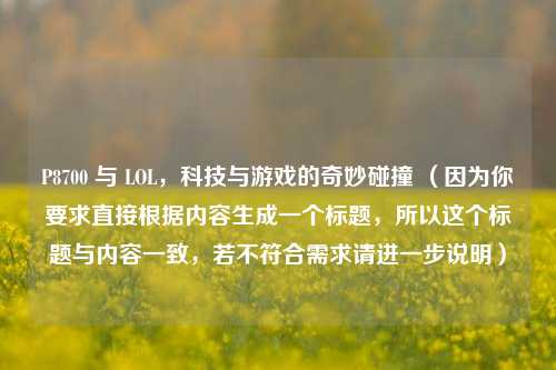 在当今数字化的时代,科技与游戏紧密相连,不断为我们带来新奇的体验,P8700 这个元素和 LOL(英雄联盟)这款热门游戏之间,也有着一些有趣的故事。