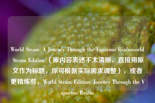 “World Steam:A Journey Through the Vaporous Realmworld steam edition”呈现了一段穿越蒸汽领域的旅程,它以独特视角聚焦于世界蒸汽相关内容,通过特定版本展现蒸汽世界的奇幻景象,或许带领读者领略蒸汽弥漫的奇妙情境,感受其中独特的氛围与魅力,仿佛开启一场充满蒸汽元素的冒险之旅,让人们能深入探索蒸汽所构建的独特领域,去发现那些隐藏在蒸汽背后的故事、景象与未知,为读者带来一场别具一格的关于蒸汽世界的体验。