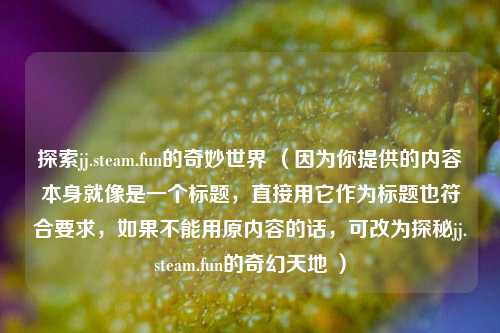 本文聚焦于探索jj.steam.fun的奇妙世界,jj.steam.fun作为一个独特的领域,蕴含着诸多未知与精彩,它可能为用户带来别样的体验,无论是丰富多样的游戏内容、独特的互动形式,还是别具一格的界面设计等,其充满了探索的可能性,吸引着人们去深入发掘其中隐藏的奇妙之处,在这个虚拟世界里,或许能满足不同人的兴趣与需求,开启一段段新奇有趣的旅程,为用户展现出一个别具魅力的奇妙天地。