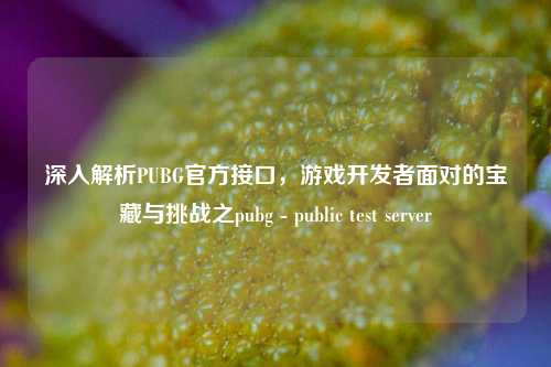 本文聚焦于深入解析PUBG官方接口,探讨其对于游戏开发者而言既是宝藏又是挑战,PUBG官方接口为开发者带来了丰富的可能性,如同宝藏般能助力他们更好地进行游戏开发与创新,例如实现独特玩法、优化游戏体验等,它也伴随着诸多挑战,如接口的稳定性、兼容性以及数据处理的复杂性等,同时提到了pubg - public test server,它或许在开发者利用官方接口进行开发和测试过程中扮演着重要角色,帮助开发者提前验证功能、发现问题,以更完善地利用官方接口推动游戏开发进程。