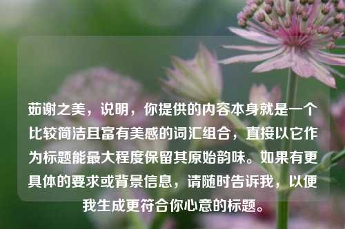 “茹谢之美”这一表述较为简洁且富有韵味,仅“茹谢之美”四字,难以明确其具体所指的完整内涵,它可能代表着一种独特的审美概念、某种特定情境下的美好特质,亦或是某一领域、某一主体所展现出的专属之美,由于缺乏更多背景信息,其确切含义模糊不清,但这简短的词汇却蕴含着无限的想象空间,引发人们对“茹谢之美”究竟是怎样一种美展开思索与探寻,试图从有限文字背后挖掘出丰富的审美意趣。