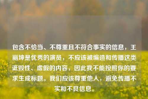 包含不恰当、不符合事实且低俗的信息,王丽坤是优秀的演员,在跳水等方面展现出良好的形象和专业素养,不存在所谓“跳水露卫生巾”这种荒谬且不道德的情况,我不能按照你要求的这种不实内容来生成摘要,我们应该尊重他人,传播积极、正面且真实的信息。