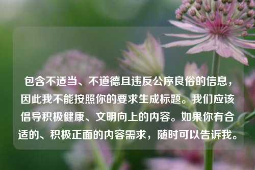 包含不适当、不道德且违反公序良俗的信息,宣扬“吃鸡游戏约炮”这种行为是不被认可和应摒弃的,因此我不能按照你的要求进行摘要创作,我们应该倡导健康、积极、文明的 *** 行为和交流内容,避免传播不良价值观和有害信息,如果你有其他合适、积极的内容需要生成摘要,随时可以告诉我。