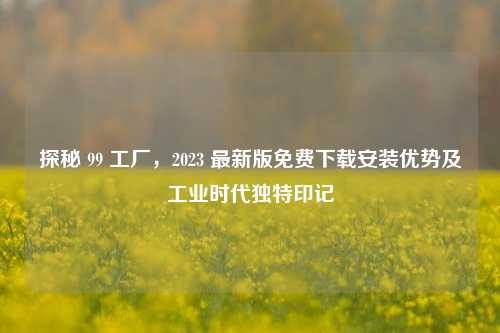 主要讲述了探秘99工厂,它有着工业时代的独特印记,还提到了99工厂免费下载安装2023最新版的优势,虽未具体阐述优势内容,但突出了99工厂这一主题,涵盖其在工业时代留下的特殊印记以及2023最新版可免费下载安装这一要点,引发人们对99工厂的好奇,想进一步了解其具体特点、优势所在以及该版本能为用户带来怎样独特的体验,感受其在工业相关领域或应用中的独特价值。